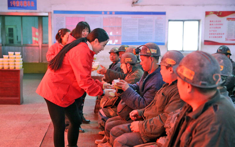 为了更好地服务一线职工,除了“冬送温暖”“夏送清凉”等固定活动外,她们还不定期增添新的服务内容:建立职工生日档案,为过生日的职工发送“生日祝福短信”和“安全短信”;定期为一线职工缝衣钉扣,送安全鞋垫和腰带;在冲刺安全生产的关键阶段,为职工发放可口的营养餐……她们穿梭忙碌在井口,一声声发自肺腑的问候和安全嘱托让职工兄弟们倍感温暖。