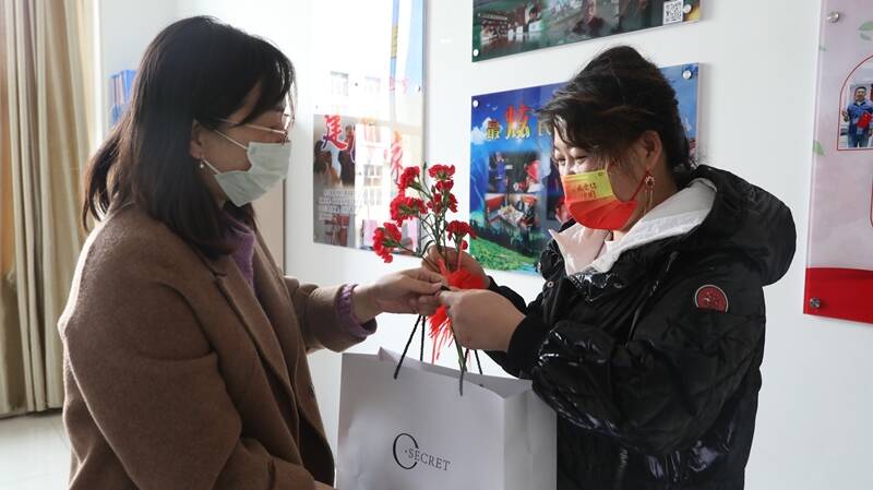 3月7日,在三八妇女节即将来临之际,新疆能化伊新煤业工会开展“送你一朵小红花”三八妇女节活动,让女职工们度过一个温馨的节日。