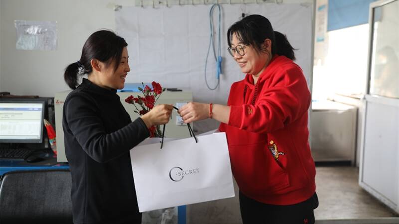 “收到咱们工会送的鲜花真是太惊喜了,礼包也特别实用,看得出来很用心,这个三八节我们很幸福,我会继续坚守好岗位,发挥咱们女职工半边天的作用。”伊新煤业化验室女职工樊静说。