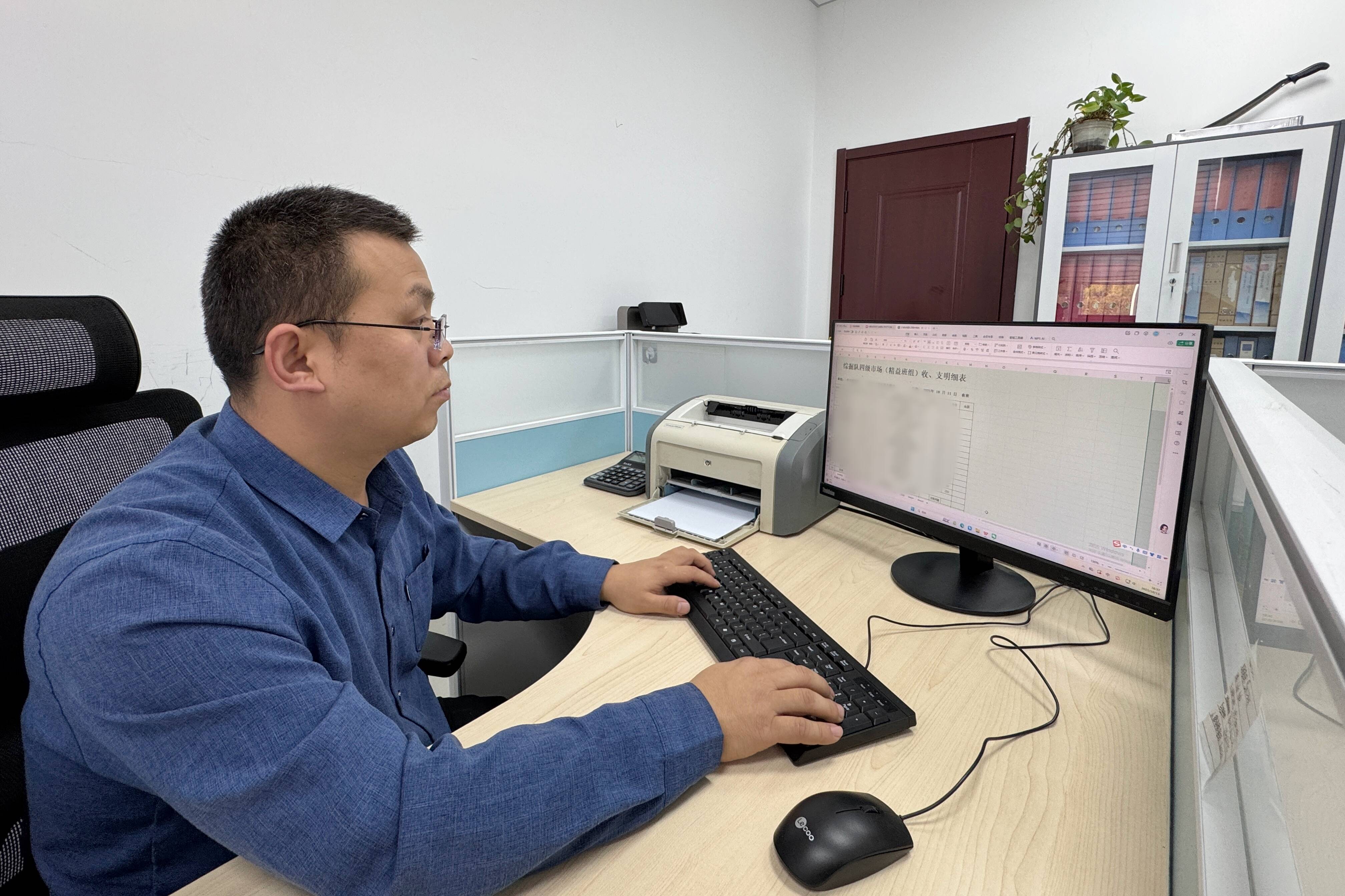 (双欣矿业基层工区核算员正在结算精益班组市场化奖励)