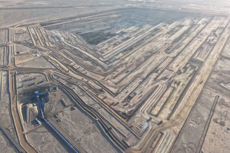这声报捷,其意义远不止于“出煤”本身。它标志着,在这场与时间的赛跑中,项目建设者们在“开工即决战”的感召下,已累计完成超过1.3亿立方米的土方剥离,以日最高50万立方米的“山能速度”,将浩大的戈壁沙滩从蓝图变为现实。更深远的意义在于,它所提供的并非只是巨量的“工业粮食”。其井田内蕴藏的29.6亿吨低灰、低硫优质不粘煤,正是下游高端煤化工产业最理想的“专属原料”,为整个一体化产业链的稳定运行筑起最可靠的“原料基地”。