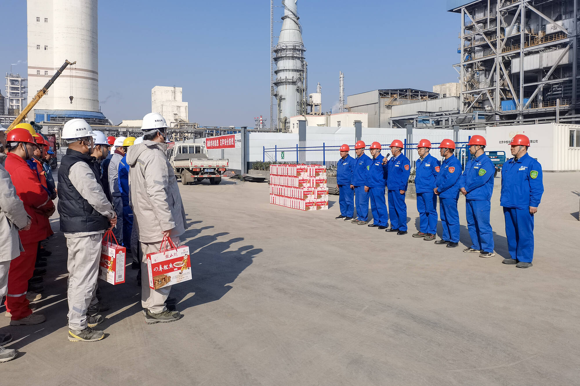 “兄弟们干得有劲,心里也得暖。”工程党支部书记齐飞这几天几乎扎在工地上,一边紧盯施工进度,一边张罗后勤保障。他笑着说:“说实话,谁不想回家?但在建的聚甲醛项目和甲醇项目都是今年的关键创效工程,早一天投产,公司就早一天见效益。”他顿了顿,望向正在作业的工友:“大伙儿都这么拼,咱后勤更得跟上。除夕晚上,热乎饺子管够!”