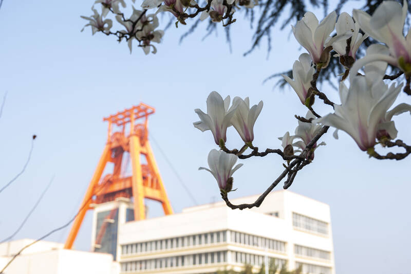 阳春三月,走进鲍店煤矿,一簇簇繁花与挺拔的绿树相映成趣,阵阵清风裹挟着淡淡花香,漫过整洁的矿区、环绕着错落的厂房,满眼皆是生机盎然的醉人春色,全然褪去了传统煤矿的沉闷旧貌。