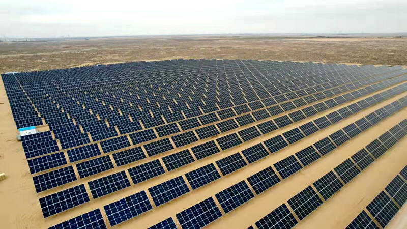 (沙漠中建起光伏)